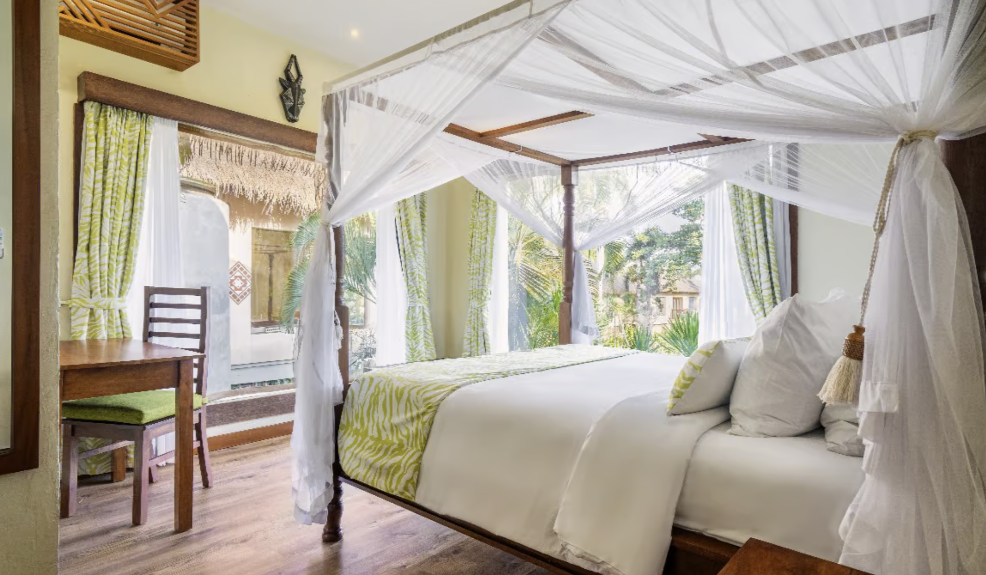 Catering exclusively for an extended family unit or a small group of friends, Tembo is a spacious bungalow characterised by a separate living & dining area. This three-bedroom lodge overlooks the Kiboko Swimming Pool and in the same way accommodates up to six people.